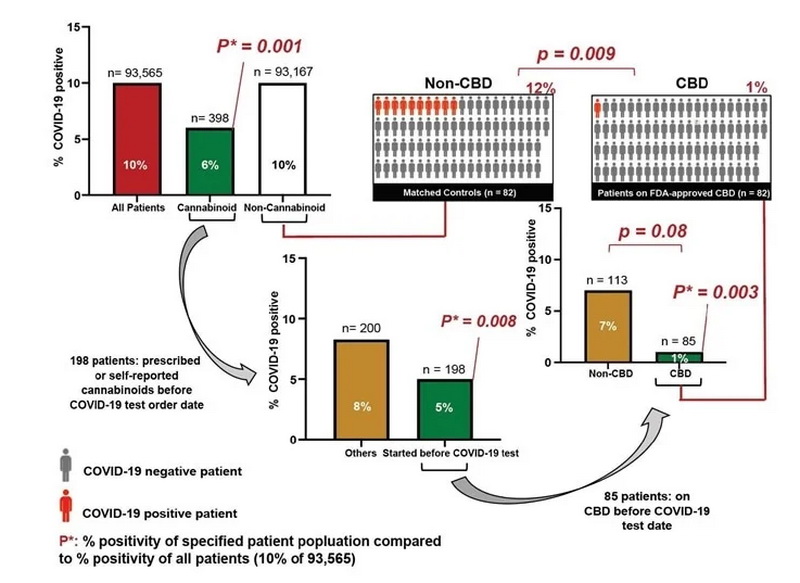 Παραδόξως, η συχνότητα εμφάνισης SARS-CoV-2 ήταν μόνο 1,2% μεταξύ των ασθενών που έλαβαν CBD, σε σύγκριση με το 12,2% μεταξύ των αντίστοιχων ασθενών που δεν είχαν λάβει CBD.
